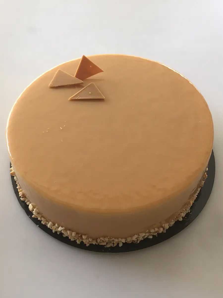 Gâteau entremets : Mousse vanille, insert mangue passion, ananas caramélisés, streusel
